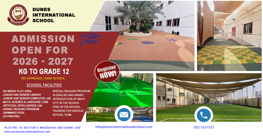 What is the school that makes you proud? Shout it out, Say it out loud! The tagline holds true for any student who enrolls at DUNES INTERNATIONAL SCHOOL, MUSSAFAH, and an institution
